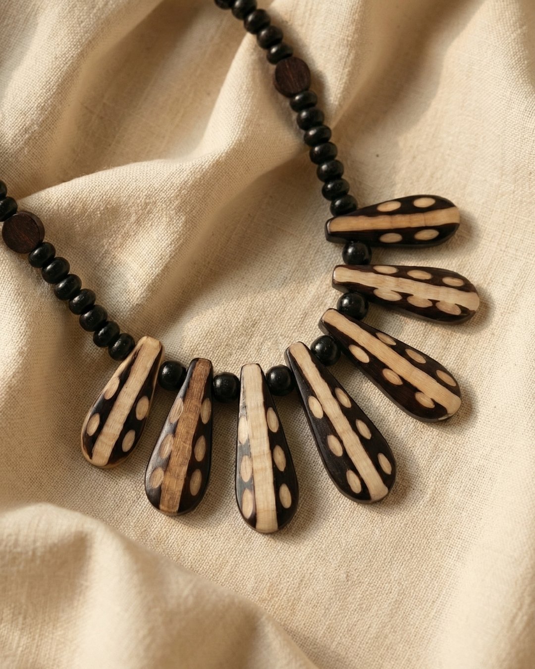 Reflecting the rhythm and flow of tribal design, the Boheva Tribal Rain Necklace from Boheva brings texture and movement to your look. With its distinct drop elements and natural wood tones, this piece captures an earthy, grounded aesthetic. It pairs effortlessly with both contemporary and traditional outfits, adding a unique handcrafted edge.