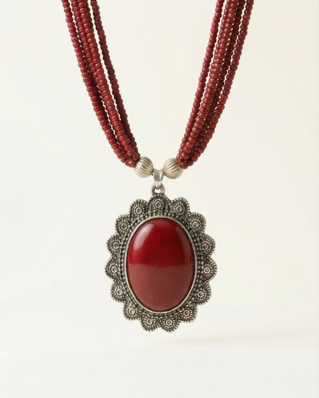 Designed with a rich heritage influence, the Crimson Heritage Pendant Necklace from Boheva captures attention through its deep red beads and ornate central pendant. The bold tones bring warmth and sophistication, while the detailed craftsmanship adds a sense of artistry. It’s a versatile statement piece that complements both festive and modern wardrobes.