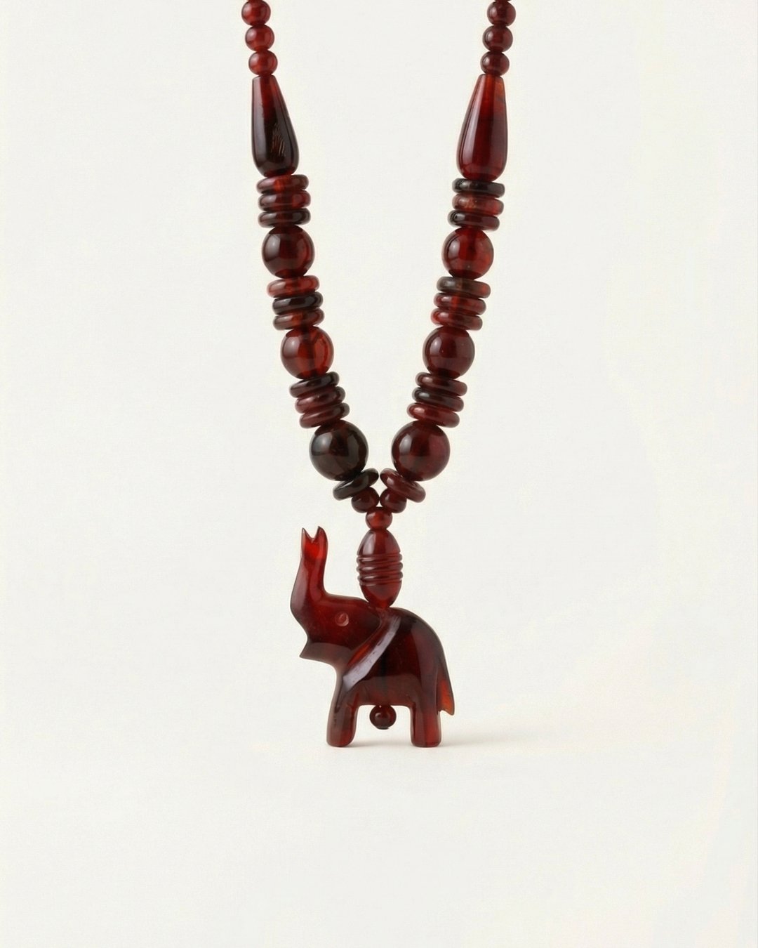 Rooted in bold bohemian expression, the Maroon Elephant Pendant Necklace from Boheva is designed to stand out effortlessly. Featuring rich maroon beads and a striking elephant pendant, this piece brings warmth, depth, and character to any outfit. The elephant motif adds a touch of artistic charm, while the deep tones make it easy to style with both ethnic and everyday looks.